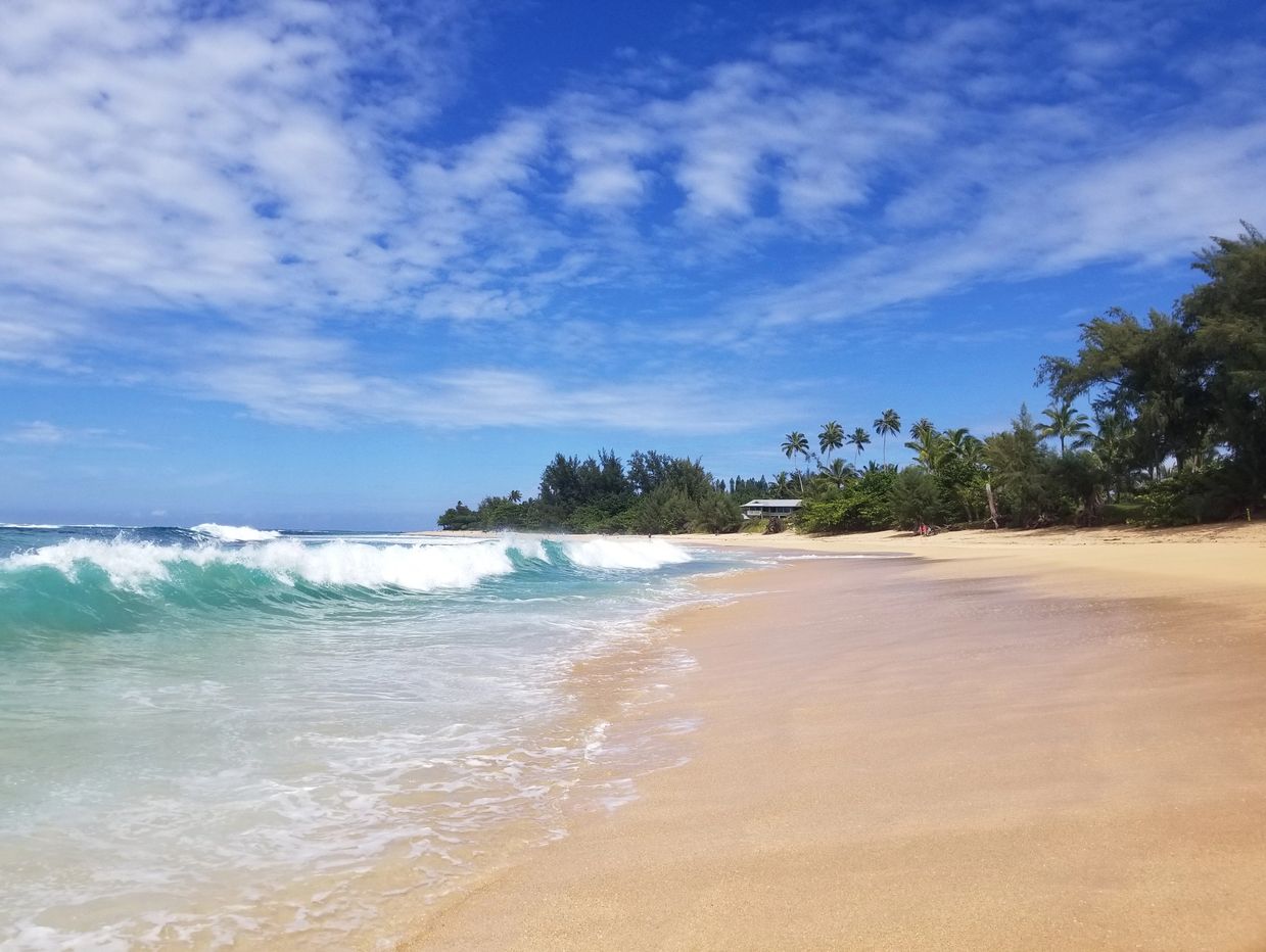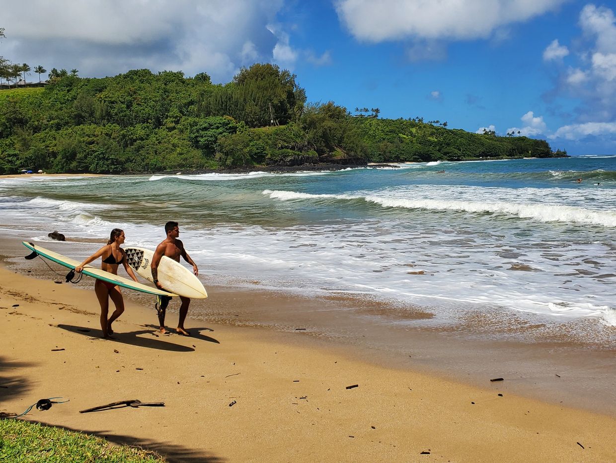 Ke'e Beach (about 30 minutes from Princeville) is a great beach located at the trail head to the Kalalau Trail in Hāʻena State Park, and reservations are necessary to get into the park (click here for reservation info).