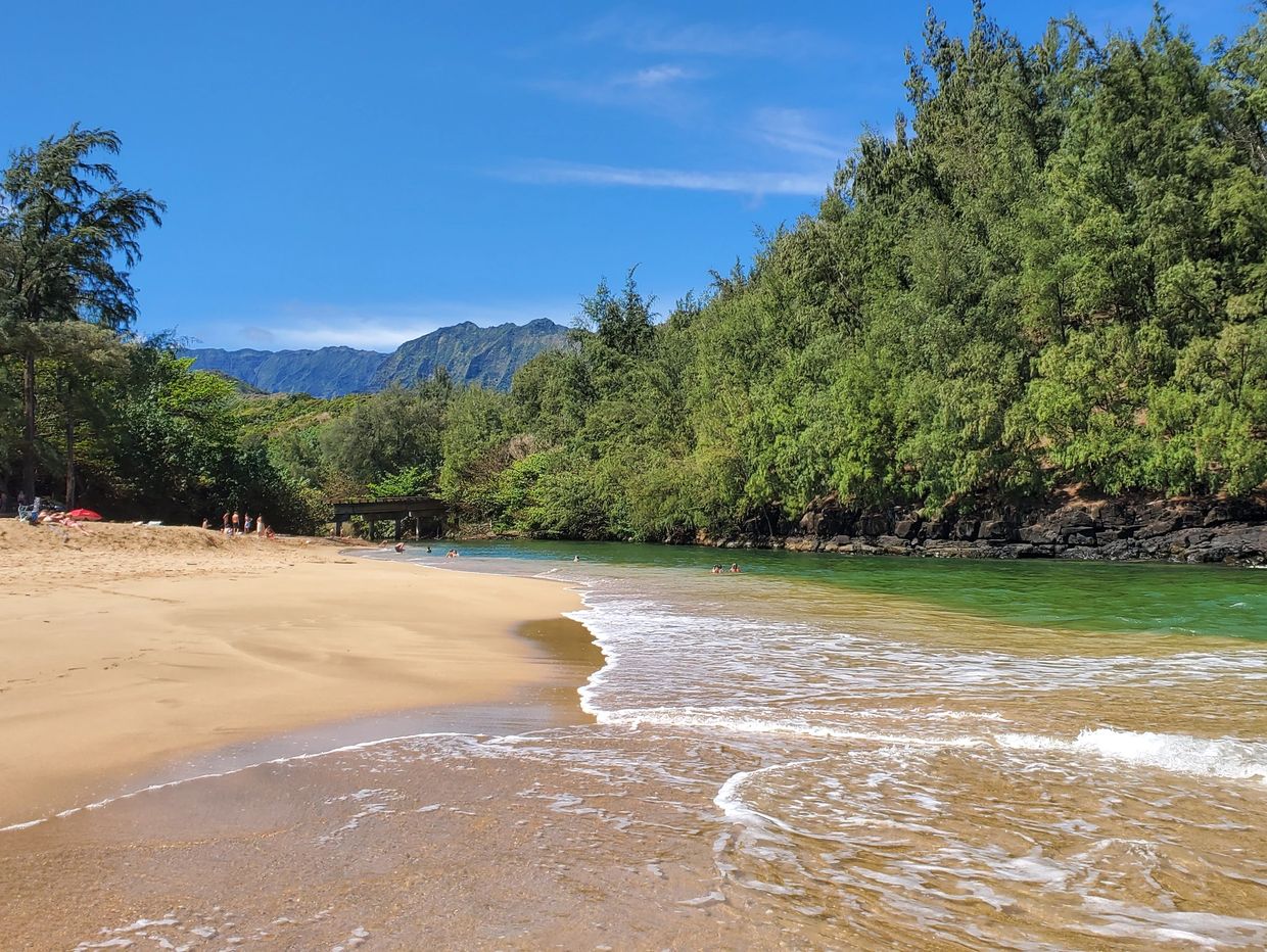 Kalihiwai Beach usually isn't very crowded and has plenty of shade, making it a good picnic destination.